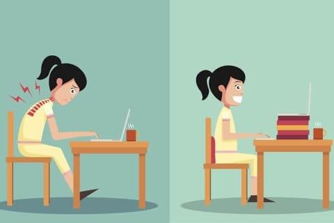 Tip 1: Put the laptop or screen at eye level using a book or two to raise this up