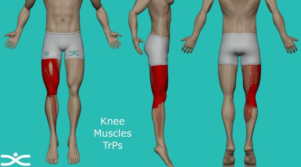The following image represents the TrPs pain pattern of all the muscles that have a direct relationship with the knee as mentioned earlier in the article.