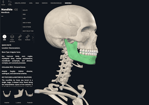It could be argued that one of the main bones of the jaw is the “jaw bone” or in medical terms the mandible. As shown in the posted image, it kind of has a “J” shape to it making the word “jaw” even more appropriate. It is the bone that probably has the most moving component involved in the functional aspect of jaw mechanics.